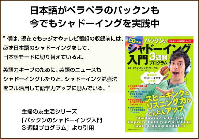 日本語がペラペラなパックンも普段からシャドーイングを実践しています。