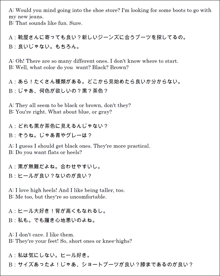 ステップ2では、下記のような短い会話をシャドーイングして、ネイティブが言ったことに、瞬間的に反応し、返事ができるようにトレーニングをします。
